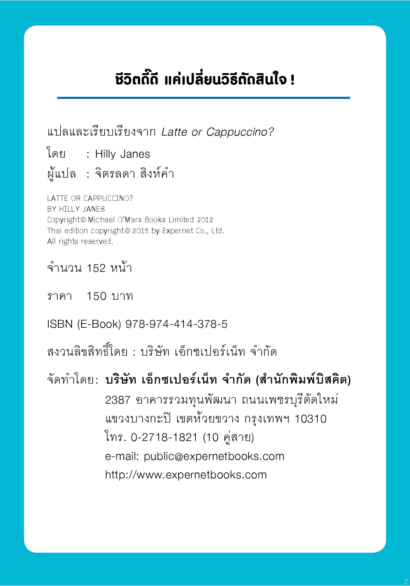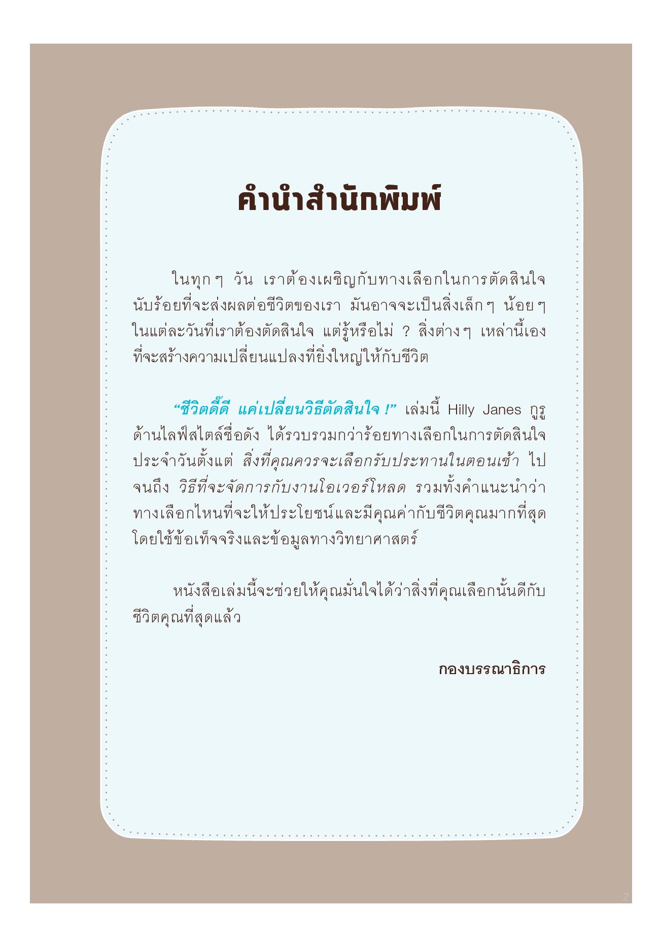 พลิกชีวิตให้ดี๊ดีในทุกด้าน เพียงเปลี่ยนวิธีการตัดสินใจ การตัดสินใจเพียงเล็กน้อยระหว่างวัน อาจเปลี่ยนชีวิตคุณไปตลอดกาล สุขภาพดีขึ้น! คุณภาพชีวิตดีขึ้น! งานก้าวหน้าขึ้น! แฮปปี้กับชีวิตมากขึ้น! อำนาจการตัดสินใจนั้นอยู่ในมือคุณ! และคุณเลือกได้! สุดยอดเคล็ดลับโดย Hilly Janes กูรูด้านไลฟ์สไตล์ชื่อดังจากอังกฤษ