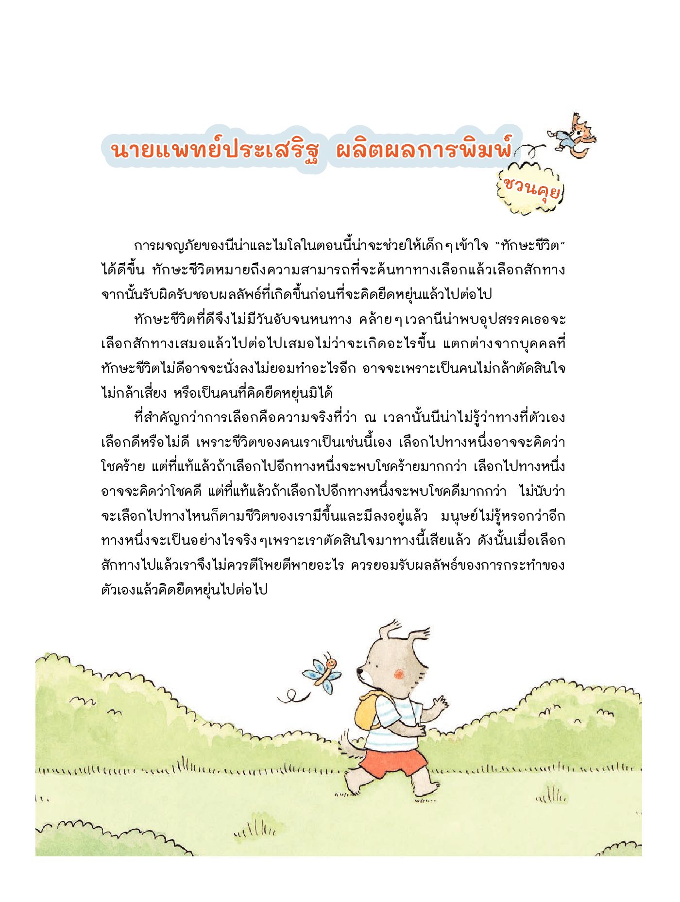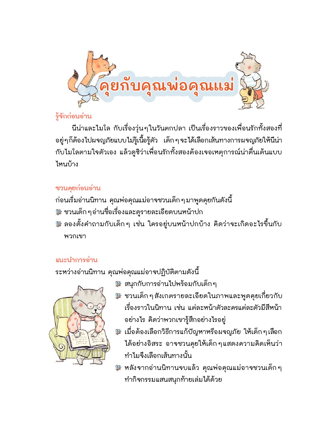 นิทานทางเลือกที่ผู้อ่านสามารถช่วยตัวละครกำหนดเรื่องราวหรือการตัดสินใจได้ ช่วยฝึกให้เด็ก ๆ รู้จักการคิด ตัดสินใจ เรื่องและรูปโดย Marianne Dubuc เจ้าของผลงาน “บ้านฉัน บ้านเธอ” “โรงเรียนในฝัน การผจญภัยของนีน่าและไมโลจะช่วยให้เด็ก ๆเข้าใจ “ทักษะชีวิต” ได้ดีขึ้น ทักษะชีวิตหมายถึงความสามารถที่จะค้นทาทางเลือกแล้วเลือกเส้นทาง จากนั้นรับผิดรับชอบผลลัพธ์ที่เกิดขึ้นก่อนที่จะคิดยืดหยุ่นแล้วไปต่อ"