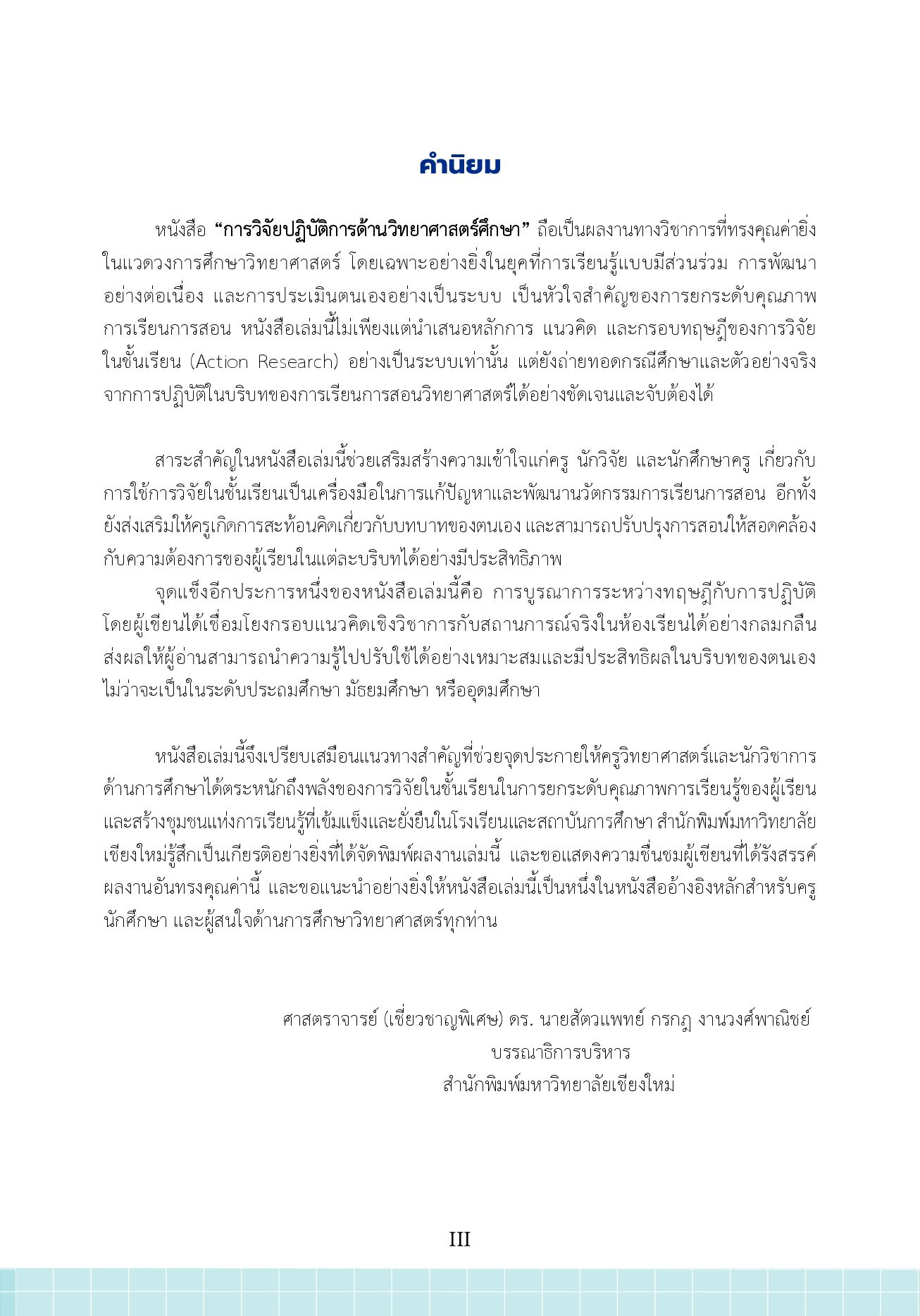 สาระสำคัญในหนังสือเล่มนี้ช่วยเสริมสร้างความเข้าใจแก่ครู นักวิจัย และนักศึกษาครู เกี่ยวกับ